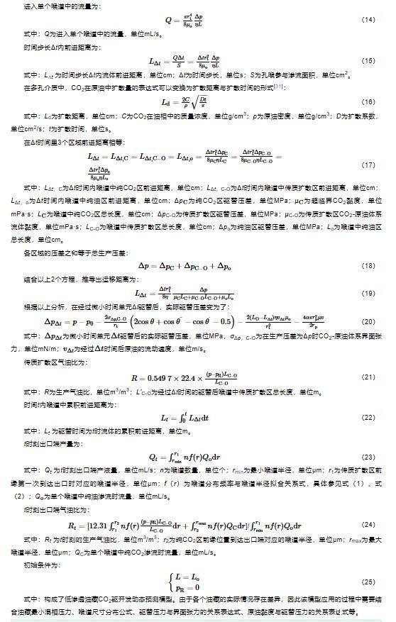 由于各个油藏的实际情况存在差异,因此该模型应用的过程中需要结合油藏最小混相压力、喉道尺寸分布公式、驱替压力与界面张力的关系表达式、原油黏度与驱替压力的关系表达式等。