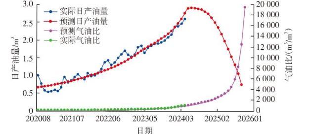 3)模型预测H3区生产井开发动态与实际生产动态相符,预计Y30-101井在2024年8月日产油量达到2.86 m3,气油比达到907 m3/m3,随后日产油量急剧降低,气油比快速增加,开发人员可提前进行开发方案的制定与调整,防止气油比快速升高。