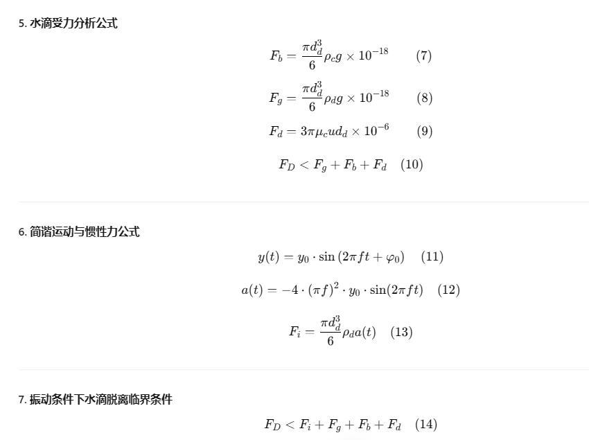 开始振动后,水滴由于惯性作用所受到的虚拟惯性力Fi由式(13)计算。