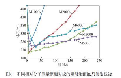 图6不同相对分子质量聚醚对应的聚醚酯消泡剂消泡性能